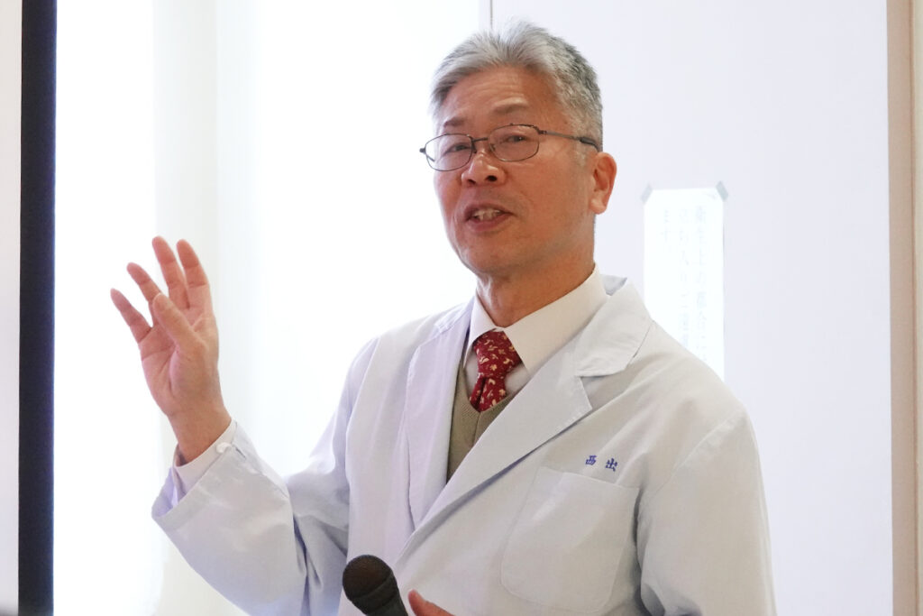レシピが手渡されたのちは、県学校給食会の久原亨事務局長より学校給食の現状を説明いただき、和歌山信愛短期大学の西出充徳教授から県産素材を使った給食メニューを紹介いただきました。